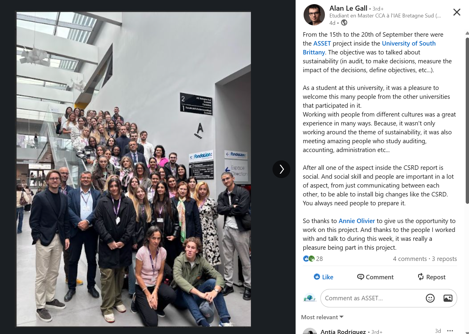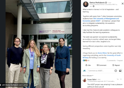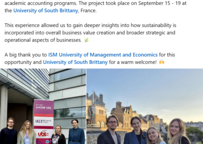 From September 14–19, 2025, the coastal city of Vannes, France, hosted the second Intensive Study Program (ISP) of the ASSET Project – Accounting for Sustainability, Social and Environmental Transparency, bringing together students and academic staff from eight...