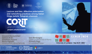 Faculty of Social Sciences – 24 – 27 September 2024 Slovenia with the paper: Lexicon and ties: affective polarization and networking practices among Italian fringe beliefs Telegram channels