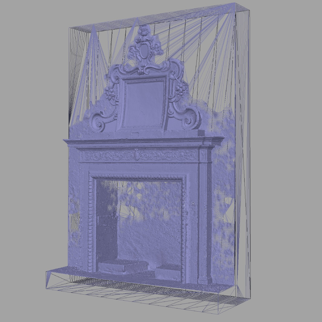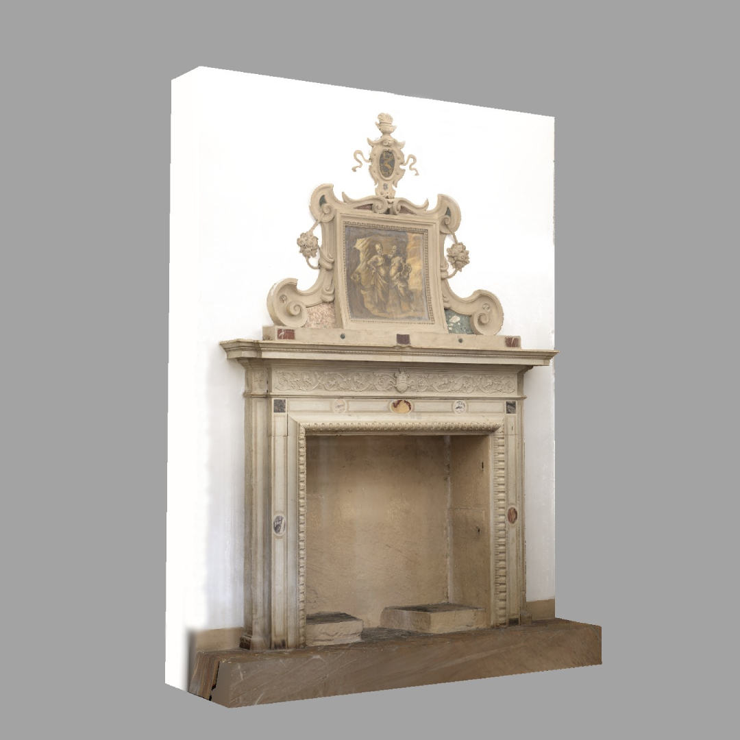 Si sono poi effettuate attività di fotomodellazione anche per i camini presenti al primo piano dell’edificio, con attenzione alle qualità dei materiali e alla resa digitale degli stessi.
