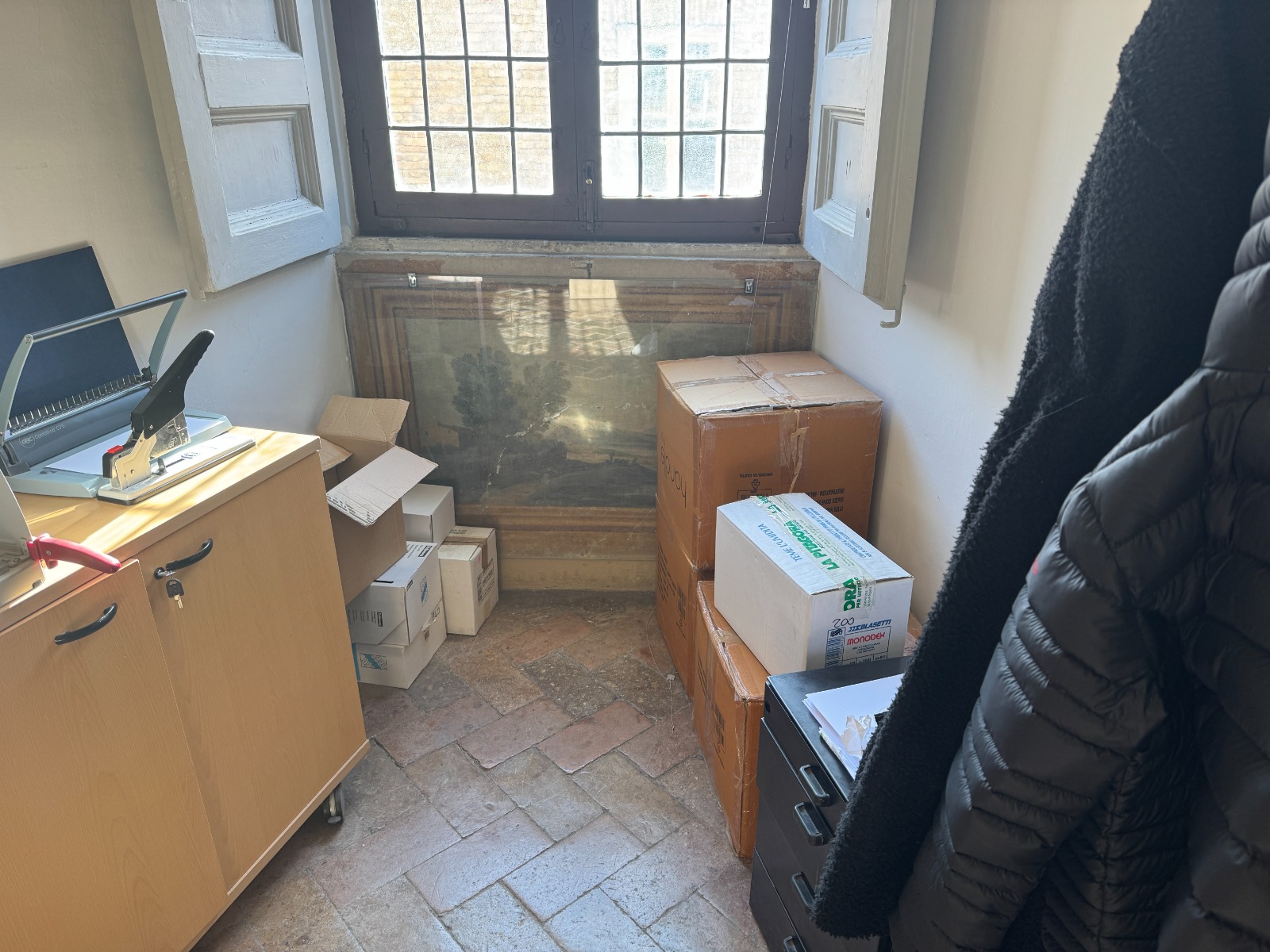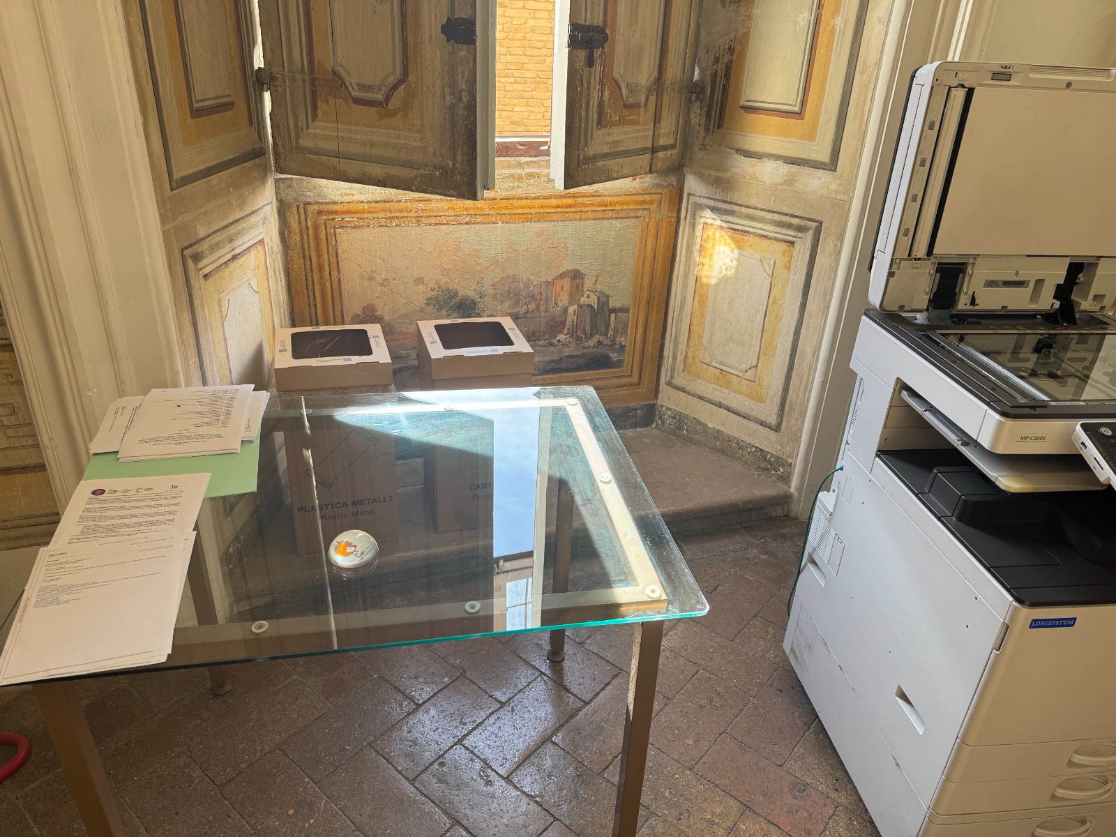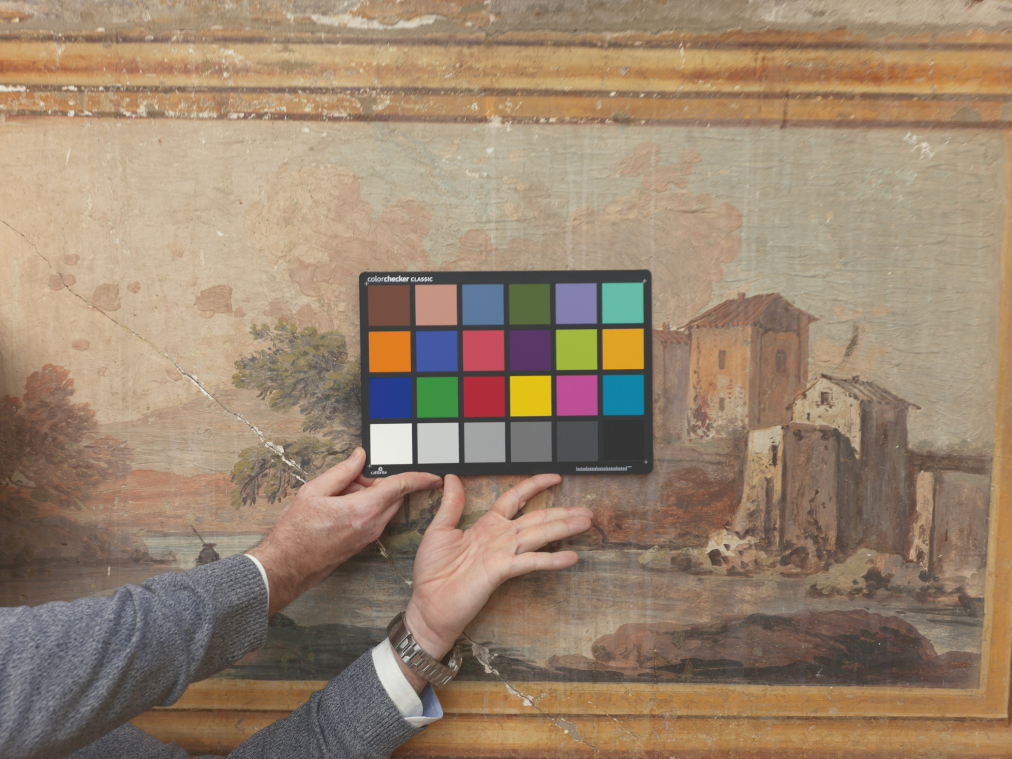 Nell’ambito di una visione più ampia che interpreta Palazzo Albani, sede del DISTUM, come museo diffuso, le attività di digitalizzazione del Laboratorio Imaging for Humanities si sono estese progressivamente ad opere di rilevante interesse storico e artistico presenti nell’edificio e nel suo contesto urbano. Nelle sale del primo e del secondo piano nobile, al di sotto delle finestre, trovano posto amene vedute di paesaggio tradizionalmente attribuite ad Alessio De Marchis, opere di raffinata qualità che documentano il gusto decorativo del palazzo nel suo periodo di massimo splendore. Questi dipinti murali, difficilmente accessibili alla fruizione ravvicinata e vulnerabili al degrado, sono stati oggetto di campagne di acquisizione fotografica finalizzate alla loro documentazione sistematica e alla creazione di risorse digitali fruibili per lo studio e la valorizzazione.