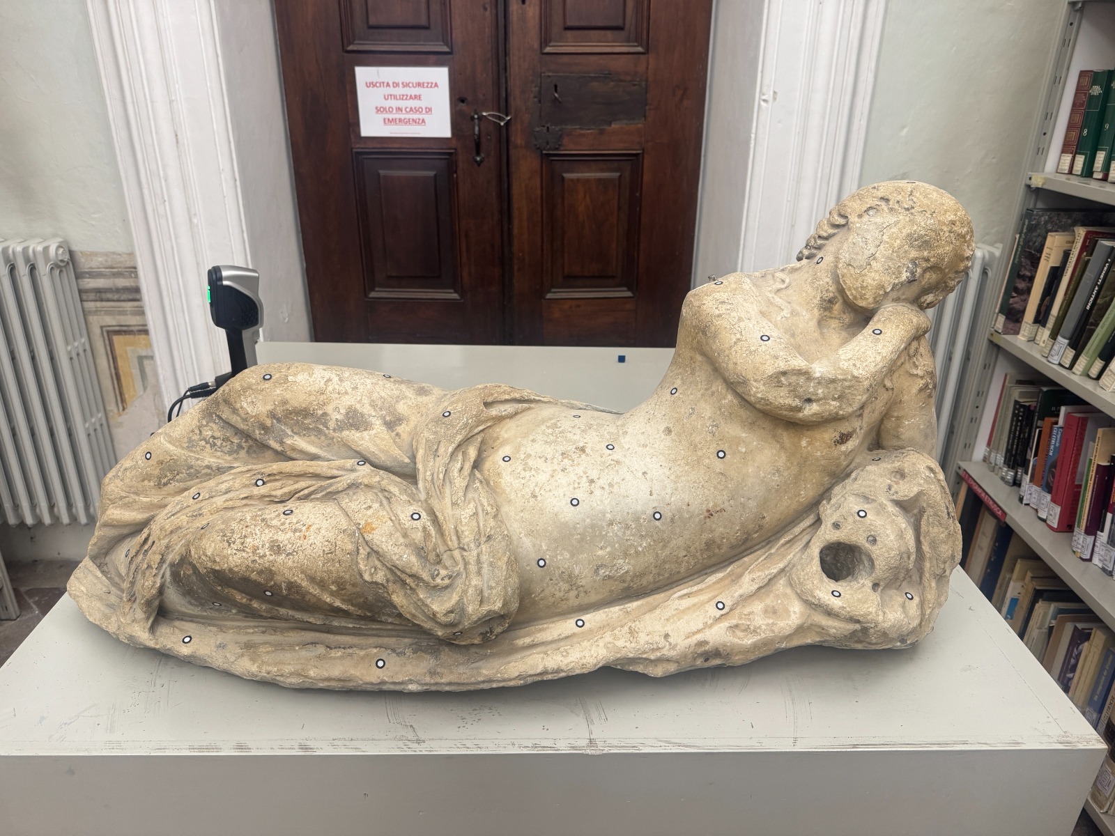 Il progetto di documentazione si è inoltre esteso alla statua di epoca romana originariamente collocata presso la “Fontana del Leone”, uno degli elementi identitari del paesaggio urbano di Urbino. La fontana ospita oggi, dopo un accurato intervento di restauro, il calco dell’antica statua che si trova in originale presso la Biblioteca di Archeologia in Palazzo Albani. La scultura originale è stata oggetto di una campagna di rilievo fotogrammetrico e di laser scanning che ne restituisce l’integrità formale in un modello geometrico tridimensionale, contribuendo alla sua conoscenza e alla sua trasmissione alle generazioni future.