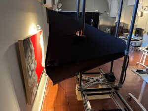 Sistema robotizzato sviluppato interamente dal laboratorio per la documentazione ad alta risoluzione di dipinti e opere su parete o supporto verticale.