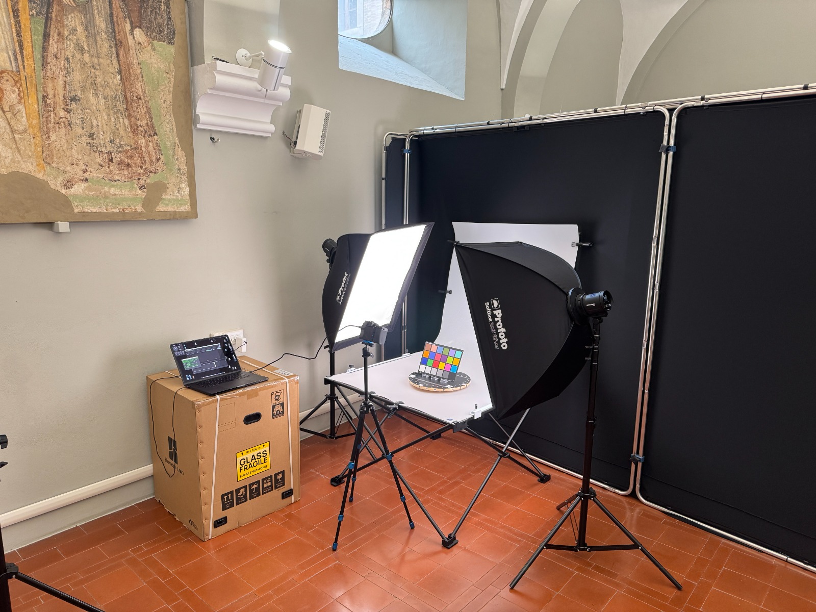 All’interno del laboratorio è stata realizzata un’area dedicata alla produzione di immagini colorimetricamente corrette di dipinti, disegni e manoscritti antichi.