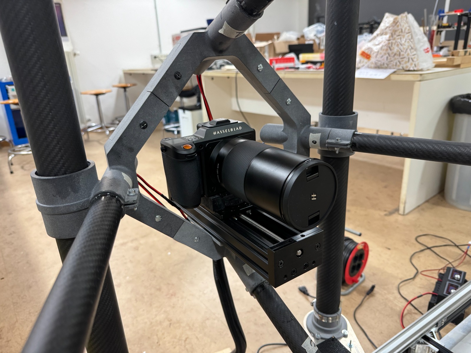 Sistema mirrorless medio formato da 100 megapixel (11656 × 8742 pixel; dimensione del pixel 3,76 μm), corredato da obiettivi Hasselblad XCD 3.5/120mm e XCD 2.5/38V.